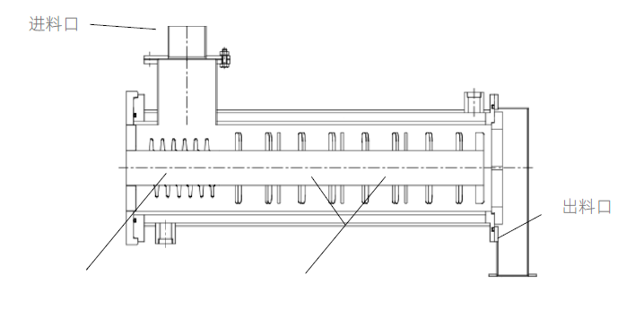 使用下料裝置將物料勻速從進(jìn)料口給入,進(jìn)入研磨腔,研磨腔內(nèi)填充有研磨介質(zhì),攪拌轉(zhuǎn)子運動帶動研磨介質(zhì)摩擦、碰撞粉碎物料??拷铝峡谔幵O(shè)有螺旋式推料槳,將物料往出口方向推動,實現(xiàn)連續(xù)化生產(chǎn)。利用仿真技術(shù)優(yōu)化結(jié)構(gòu),提高介質(zhì)有效碰撞的概率,設(shè)備產(chǎn)能大幅提高。