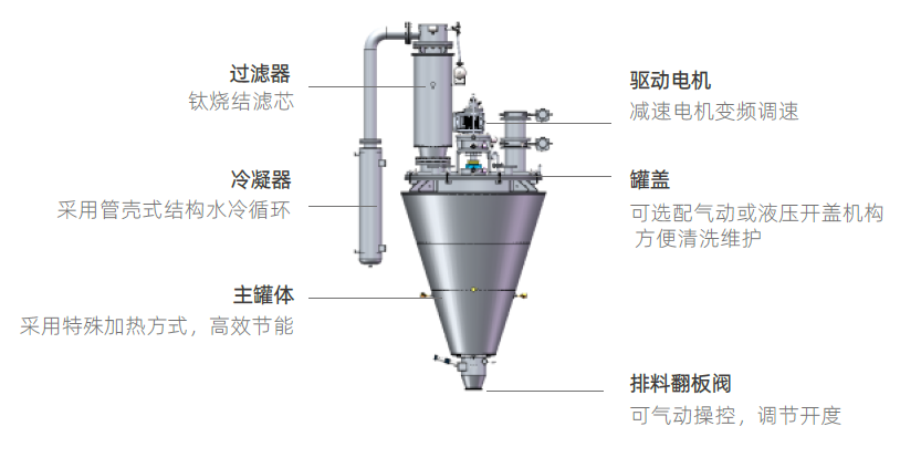 尤其對(duì)鋰離子電池正負(fù)極材料的混合和脫濕干燥,具有更高的生產(chǎn)效率和更低的能源消耗。